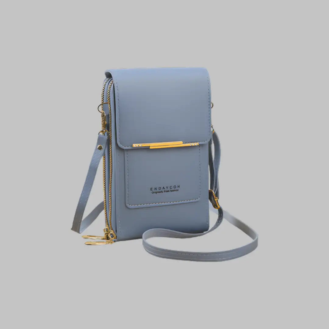 L’intérieur est compartimenté pour accueillir smartphone, cartes, billets, monnaie et petits objets sans désordre. Les emplacements pour cartes et la poche zippée facilitent l’accès rapide, tandis que la bandoulière réglable et amovible permet un port confortable en travers du corps ou en pochette.
